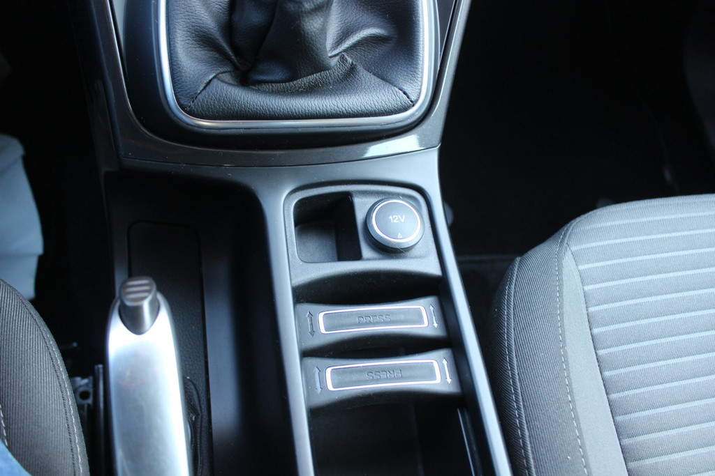 Luxe lederen afwerking op de pookknop, licht metaal afwerking op de centrale vloerconsole en alu of alu look